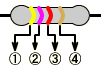 | 4本帯のカラーコード表です。 |