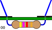 「いもハンダ」と同等になりやすい症状です。これは銅箔だけが加熱されリード線が加熱されていないためリード線にハンダが付かない状態です。見つけにくい場合がありますので「よーく」見て下さい。ハンダが足りなくてリード線が少し見えるなどは危ないです。ドーナッツ型で真ん中が開いている場合もあります。また部品のリード線が汚れている場合も考えられます。 |