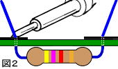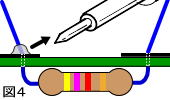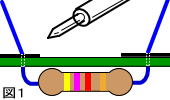 この場合ももう一度あたため直して(必ず銅箔とリード線を一緒に)ハンダを少し入れると直ります。 |
